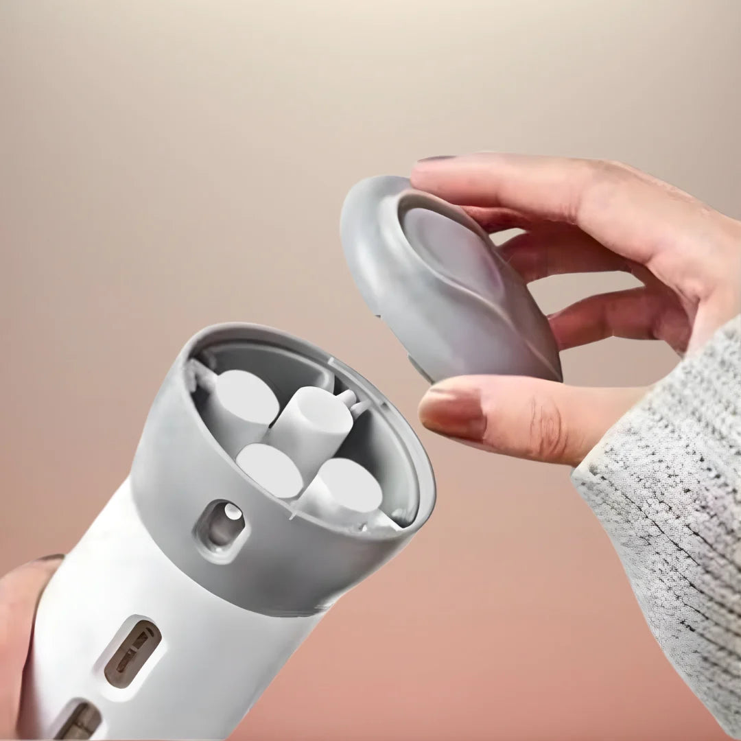 Designed for frequent travellers and weekend trips, this innovative dispenser holds four refillable bottles inside one sleek body. Simply rotate, pump, and dispense your chosen product without packing multiple separate containers that clutter your bag.